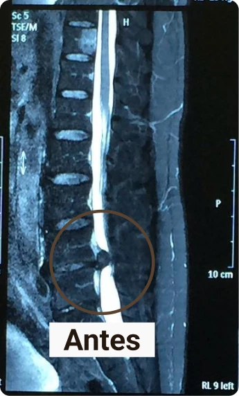 Veja por exemplo esse caso, paciente estava com uma hérnia de disco grande, ficou preocupado quando recebeu o diagnóstico do exame, já era indicação cirúrgica, mas em poucas sessões conseguimos reverter, somente com o tratamento conservador.